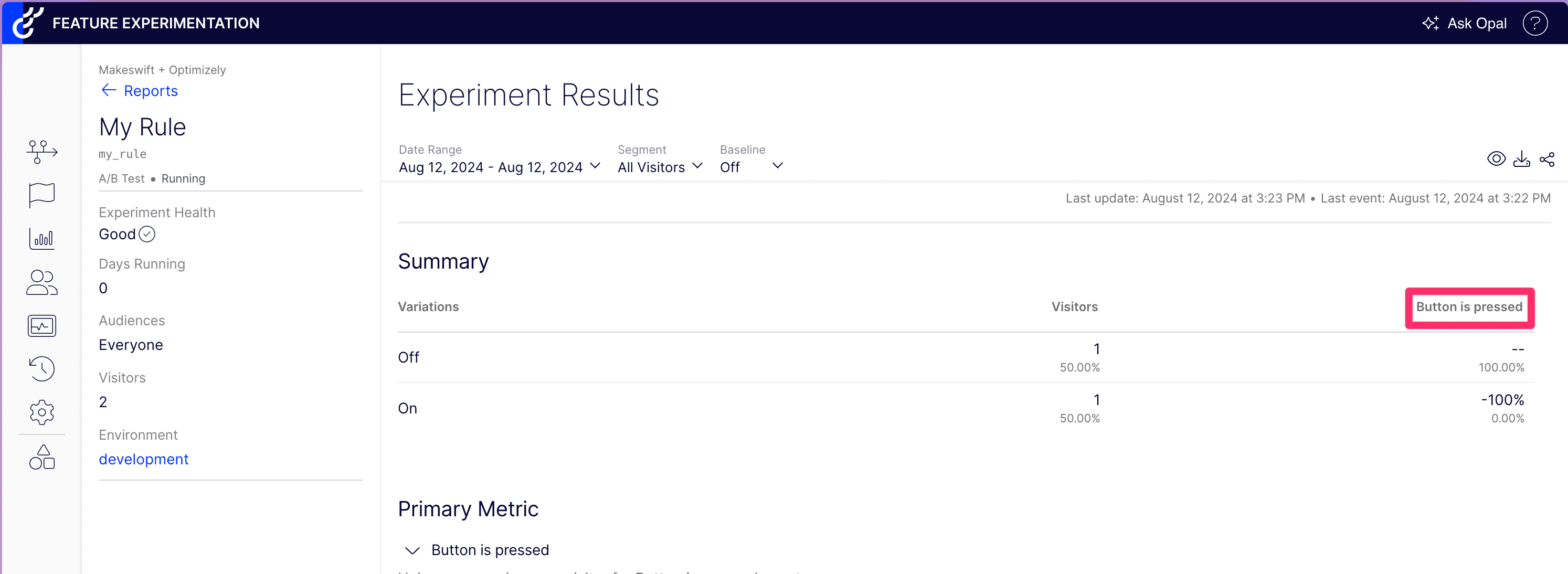 That’s a wrap! Read more about Optimizely's React SDK here. You’re now set to run A/B tests and monitor your experiment results. You can continue to check on Experiments Results to track your data and make informed decisions for the future of your pages. If you have any questions about A/B testing with Makeswift and Optimizely, don’t hesitate to reach out to us at support@makeswift.com. We’re here to help you every step of the way!