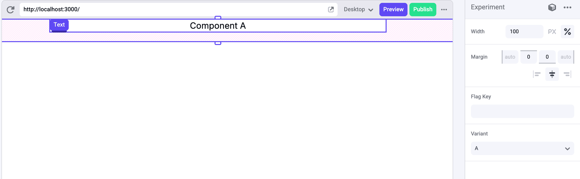 If you refresh the builder, you should see the Experiment component under the custom components dropdown. Drag Experiment into the empty slot.
