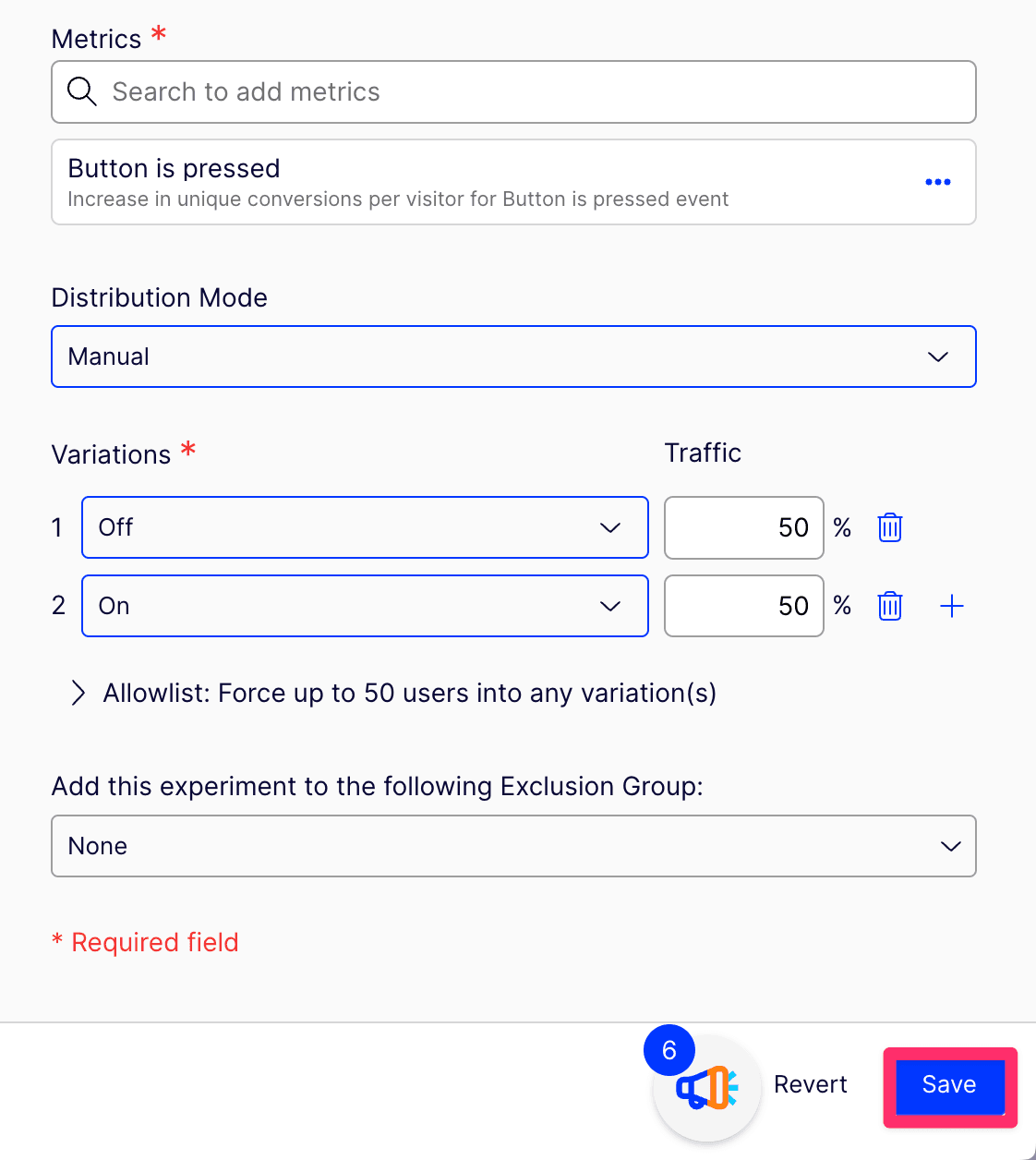 When doing this, we want to ensure the variations selected are Off & On, and hit Save.